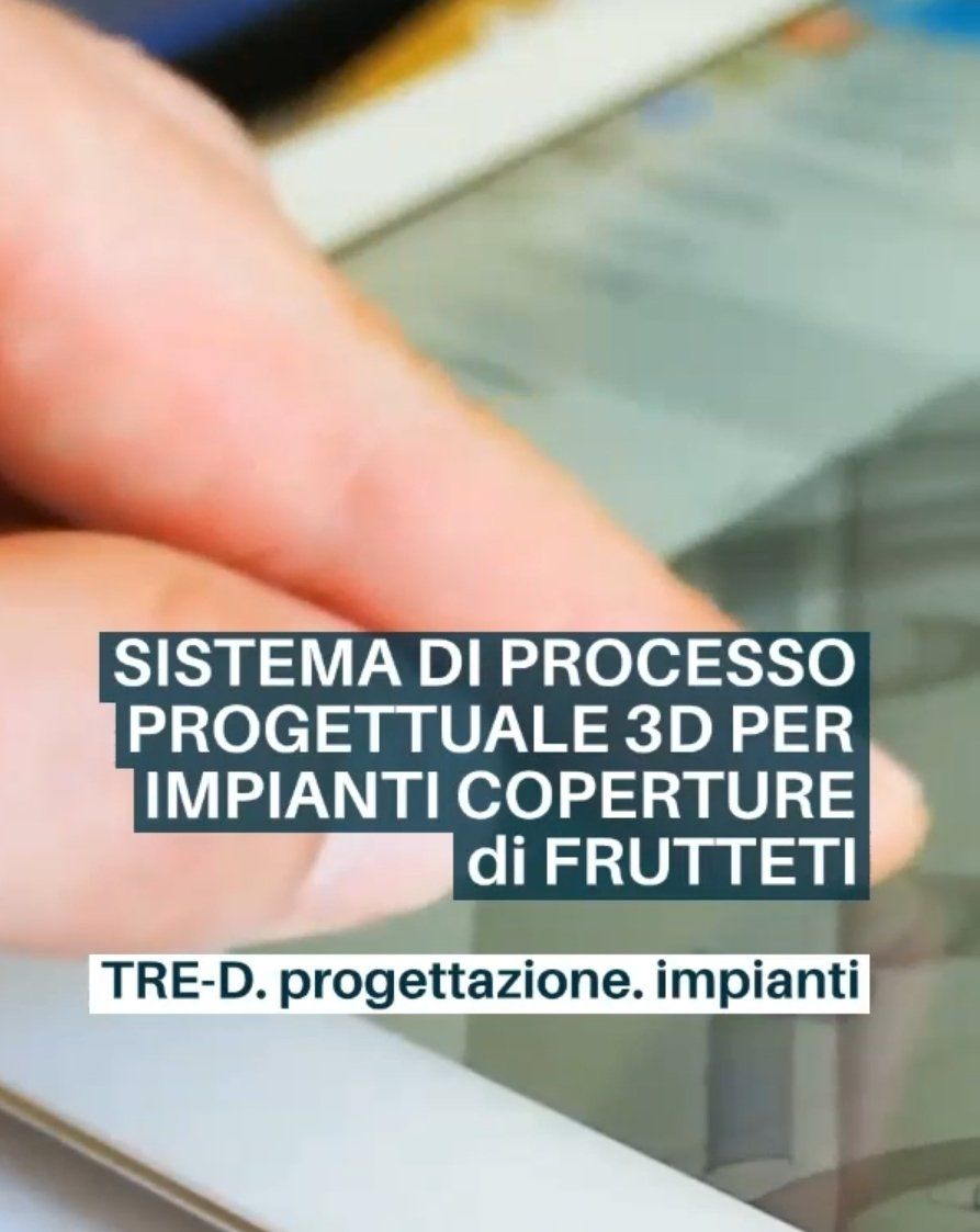 Componenti e assiemi VIRTUALI per la progettazione e calcolo di IMPIANTI DI COPERTURA PER FRUTTETI E VIGNETI, con utilizzo della tecnologia di sviluppo 3D (anziché 2D tradizionale) con esportazione preciso delle "distente di materiali" e loro quantita "codificate" garantendo massima precisione anche in fase di preventivazione e fornitura, legato a documenti di organizzazione di CODIFICA con analisi PUNTI CRITICI e SISTEMA DI CODIFICA PERSONALIZZATA per massimizzare il valore delle informazioni provenienti dai assiemi e sottoassiemi VIRTUALI 3D - utilizzando componenti MADE IN ITALY (codificati con codici fornitore e aziendale per comunicazione con la gestionale aziendale) + rappresentazioni grafiche 3D reali per visualizzazione e verifica veloce, elaborati 2D dimensionati, e distente materiali, modelli e tavole, per la facilitazione della realizzazione impianto da tecnici e impiantisti anche a distanza.